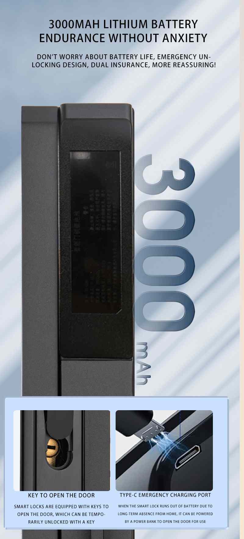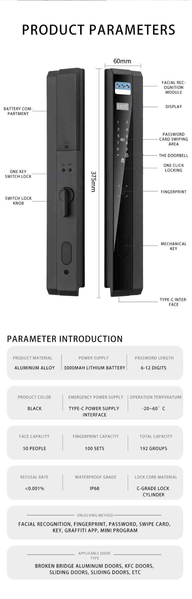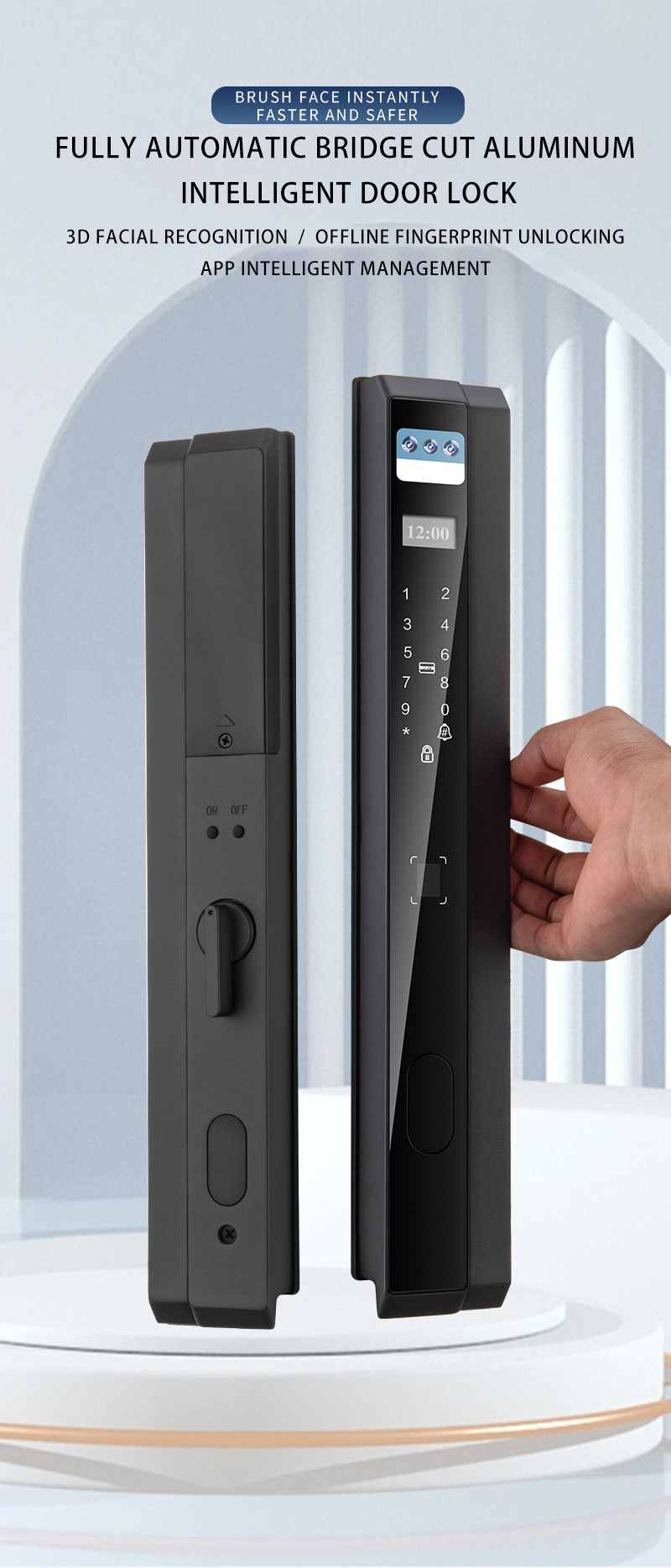 يجمع قفل الباب الذكي المصنوع من الألومنيوم F908 بين تكنولوجيا الأمان الحديثة والتصميم الأنيق. مصنوع من سبيكة الألمنيوم متينة, يوفر هذا القفل الذكي حماية طويلة الأمد مع تعزيز جماليات بابك.