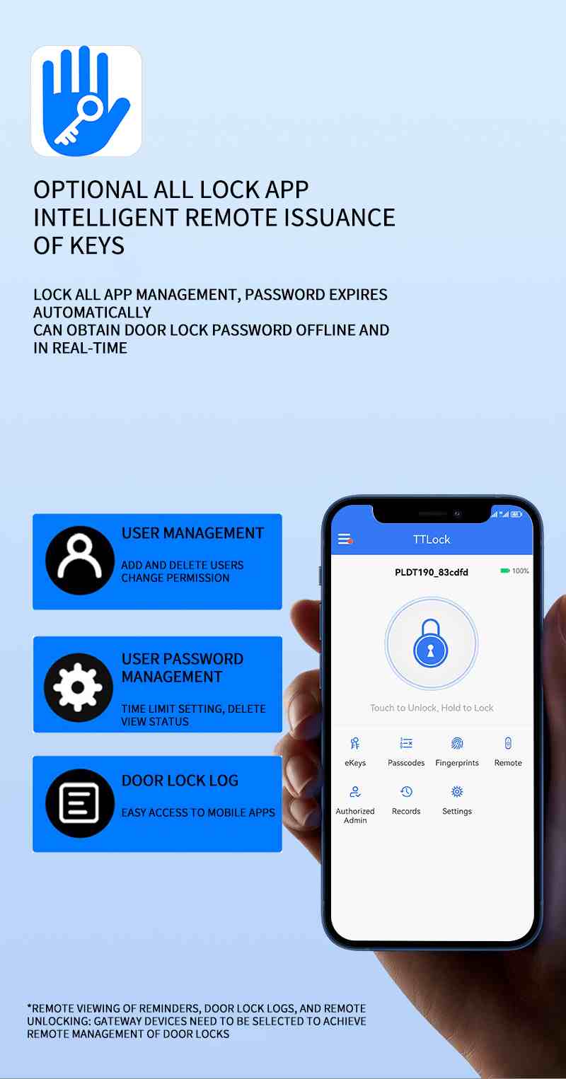 طرق فتح متعددة: الوصول إلى منزلك عن طريق بصمة الإصبع, كلمة المرور, بطاقة RFID, أو التحكم بالواي فاي عن بعد.
